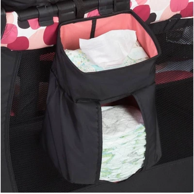 The Baby Trend Resort Elite Nursery Center is the must-have accessory to your nursery. The removable Safe Surround changing table and the diaper stacker helps make changing time easy. The lightweight napper with canopy includes a music/vibration unit and it conveniently converts to a stand-alone rocker. Remove the full size bassinet as your child grows to use as a play yard for playtime and quiet time. The caster wheels provide easy mobility when moving from room to room. The nursery center easily collapses to a compact fold for travel and storage.