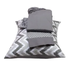 Bacati – MixNMatch Gray Chevron Dots 3 Pc Toddler Sheet Set