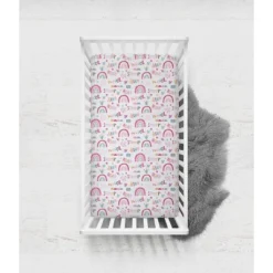 Bacati – Little Dino & Rainbows Fuchsia/Aqua Muslin 100 Percent Cotton Muslin Universal Baby US Standard Crib Or Toddler Bed Fitted Sheet