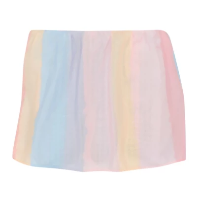 - Gorgeous shirred rainbow-colored crib skirt with 14.5″ drop length