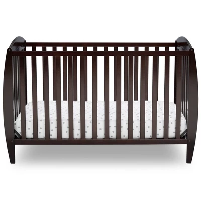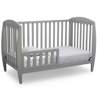 Set the tone for a beautiful and calming nursery with the Taylor 4-in-1 Convertible Baby Crib by Delta Children. The crib’s sleigh-style silhouette and open, airy slats puts a playful spin on classic style-just the thing you need to give your baby’s room the perfect amount of personality. Built to grow with your child, this crib features an adjustable mattress height that allows you to lower the mattress as your baby begins to stand, plus it converts to a toddler bed, daybed and full size bed. An exceptional value, the Taylor 4-in-1 Convertible Baby Crib by Delta Children provides your little one the right bed for every age and stage. Available in gray, Bianca White or Dark Chocolate, and coordinates with other furniture from Delta Children in the same finish color to complete your nursery.